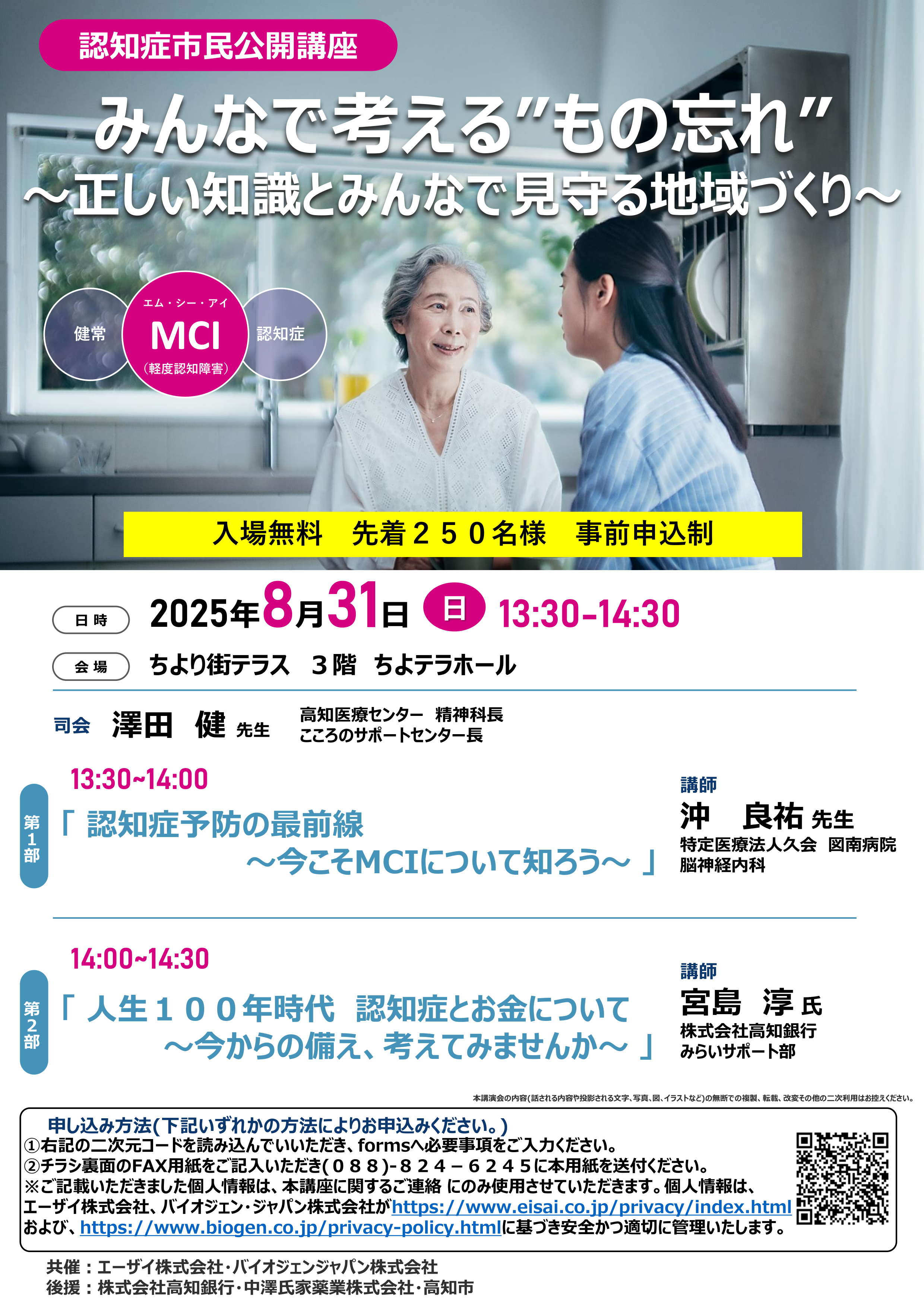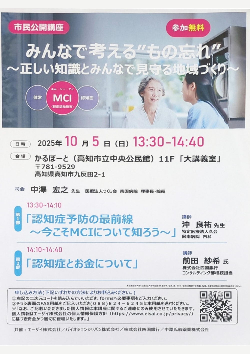 演題:認知症市民公開効果認知症予防の最前線~今こそMCIについて知ろう~